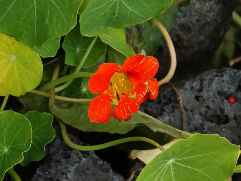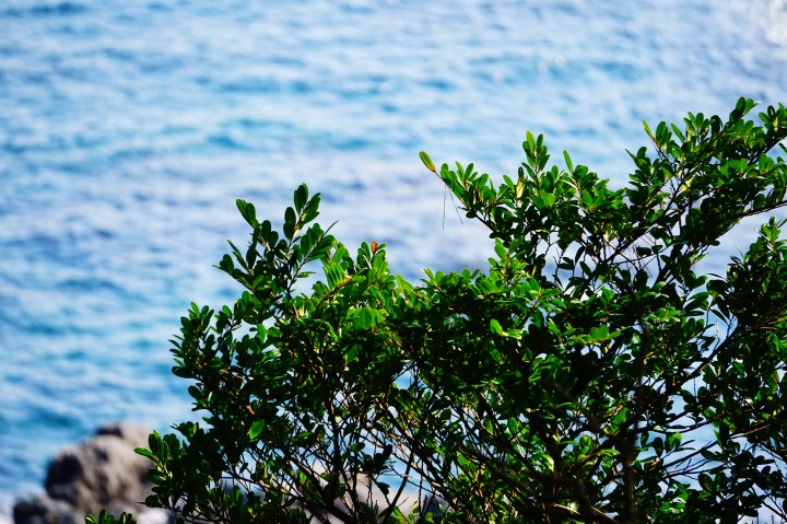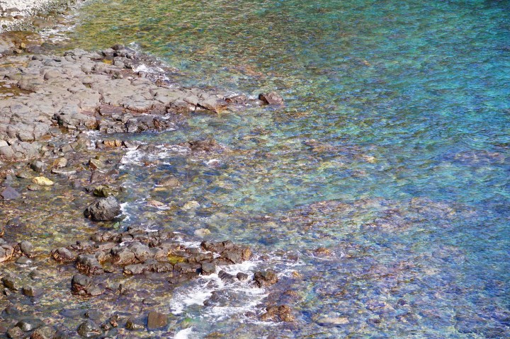 Oh my word. . . the view! Every corner we saw some other just eye-catching sight. Didn’t know where to look — inland towards the palms and rising pensions along the coast with the birds and flowers surrounding, down the cliff-marked embankments at the crashing waves and black jutting rocks rising from the water, or outward towards the far blue ocean. Blue. . . it was so blue! Like the movies and books and all those things they say about the deep blue sea. It had greens, aqua, teals. . . like a Lisa Frank art piece.