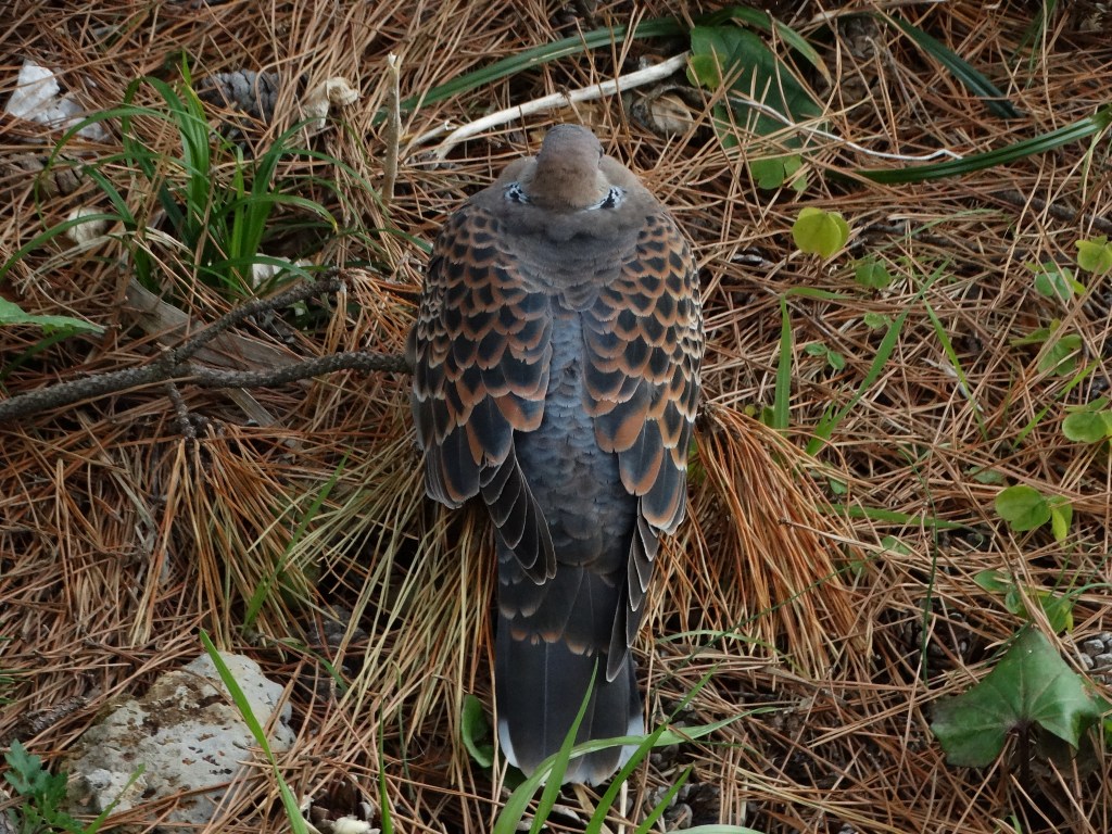 The pigeon here was trying (and succeeding) at disguising himself as a rather large pine cone. . . scared us when he moved out of the corner of our eye ππ€£